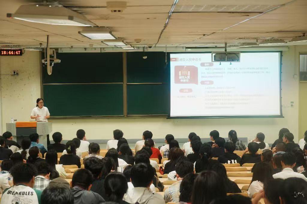 9月12日,学院在太白湖校区举行2025级新生入党启蒙教育宣讲会。学院组织员、2025级辅导员郭锦翠老师担任主讲,全体新生参加会议。