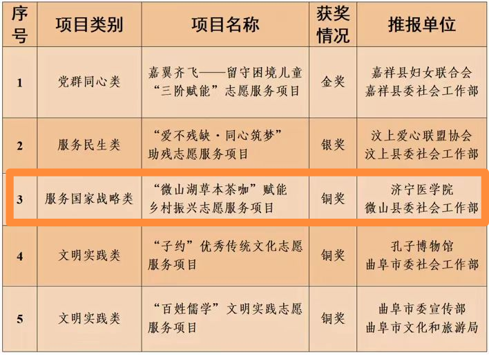 近日,由山东省社会工作部、山东省志愿服务指导中心、山东省志愿服务联合会等单位联合主办的2025年山东省志愿服务项目大赛在山东青年政治学院圆满落幕。我院推报的微山湖草本茶咖"赋能乡村振兴志愿服务项目荣获省级铜奖,实现了学校在该项赛事中的新突破。